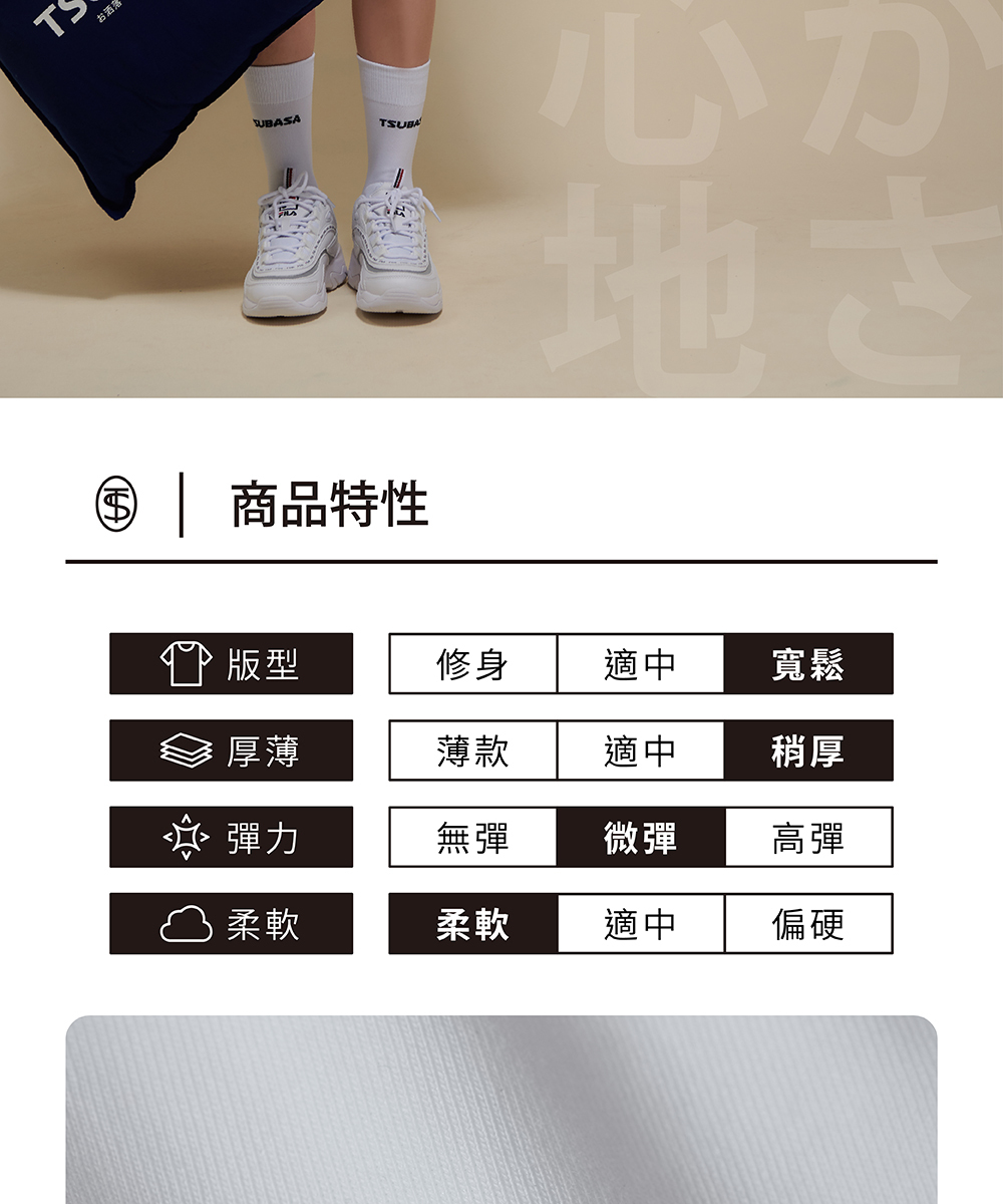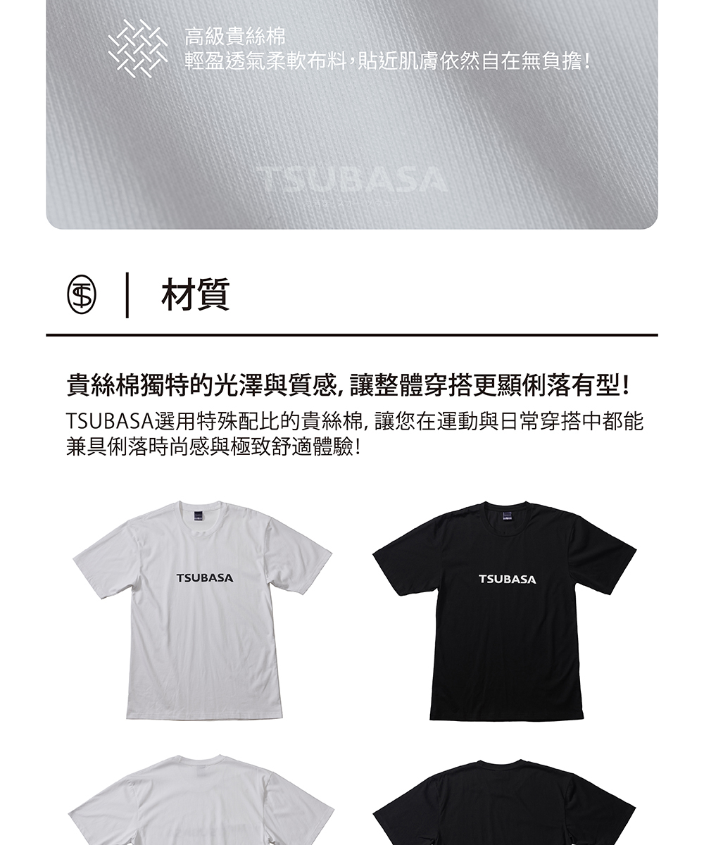 TSUBASA洒落運動衣選用特殊配比的貴絲棉,讓您不只時尚、洒落,在體感上更為舒適!