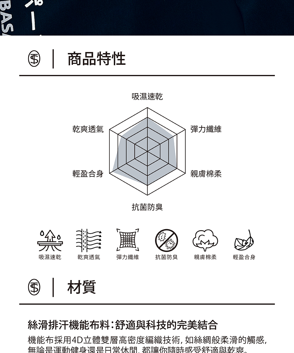 絲滑排汗機能布,流汗後不摩擦搔癢