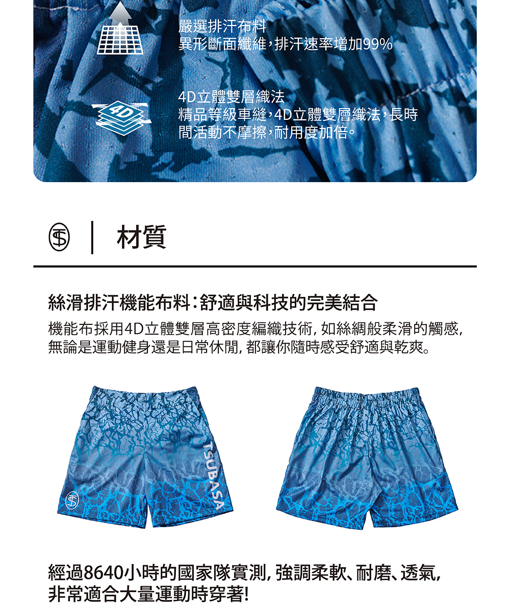 TSUBASA獨有運動版型,4D裁片拼接
